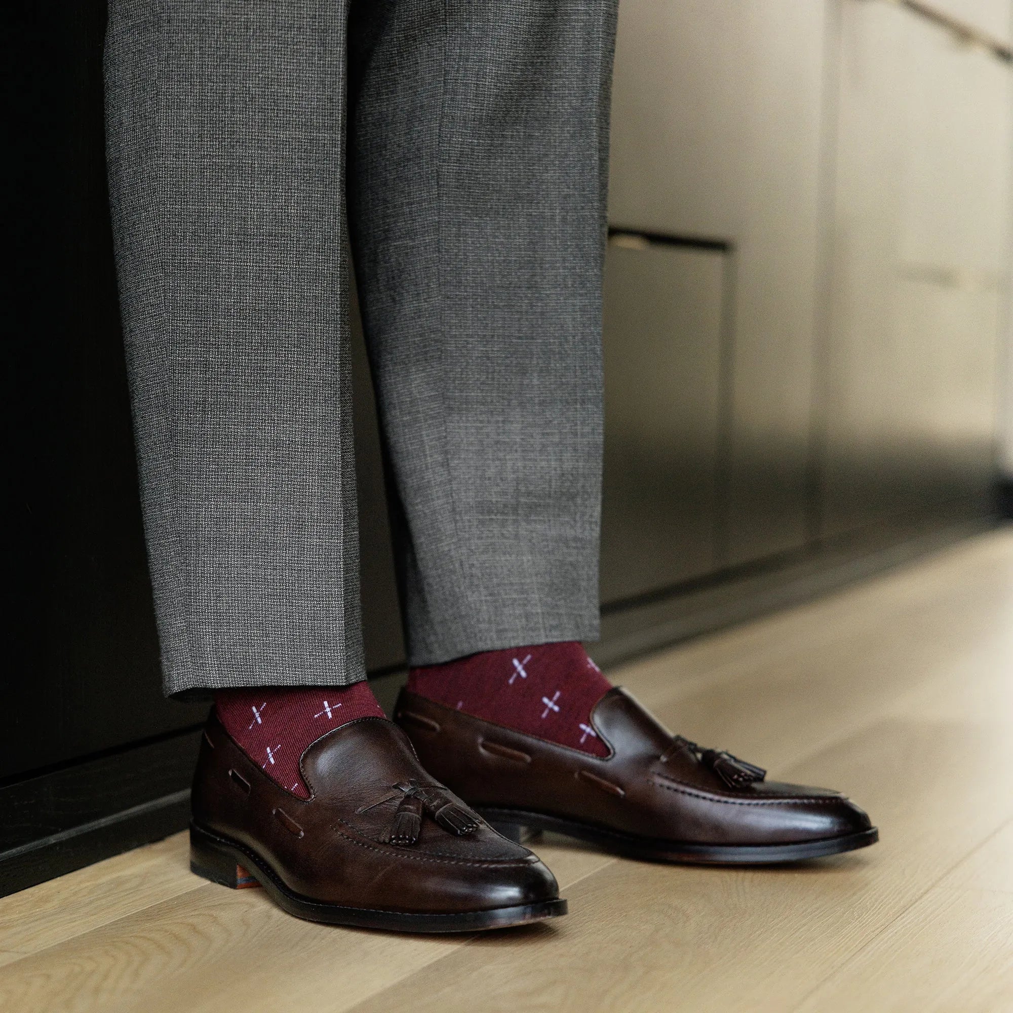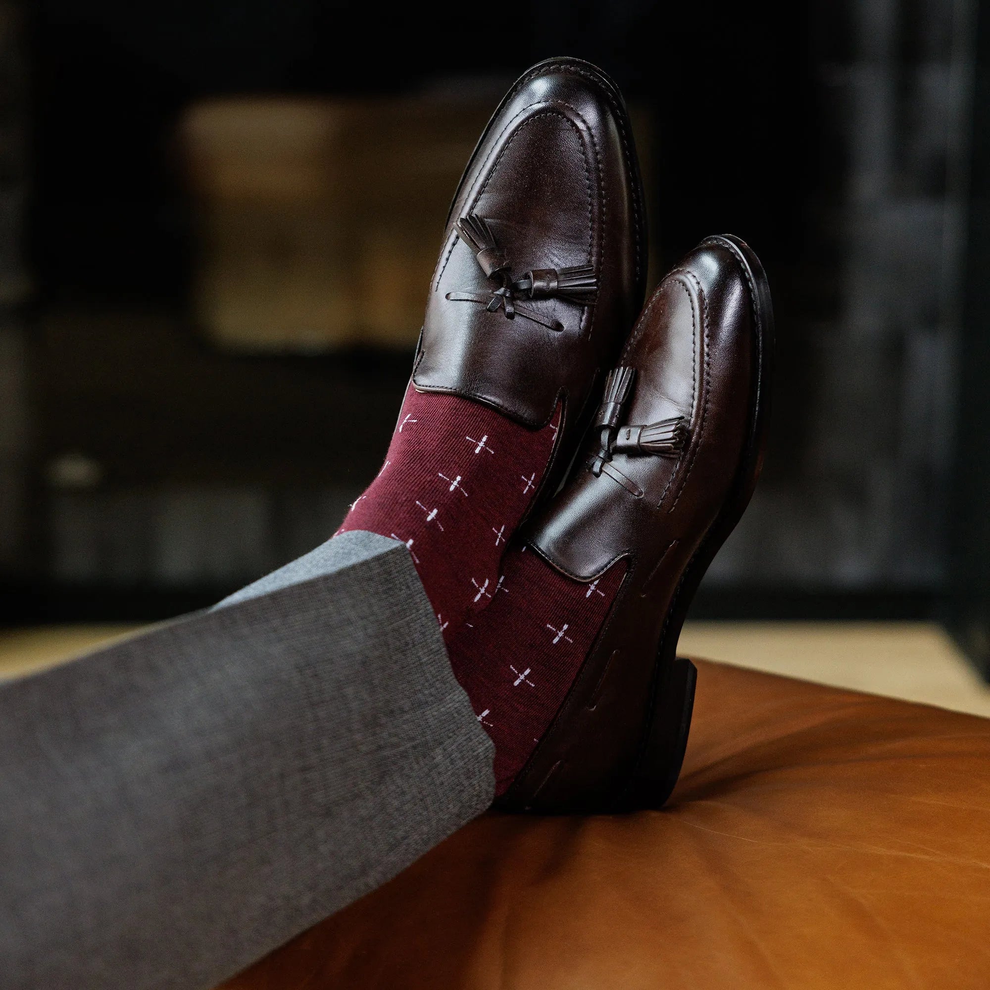 Merlot & White T-Suns - A Deep Red Sock with White T-Suns