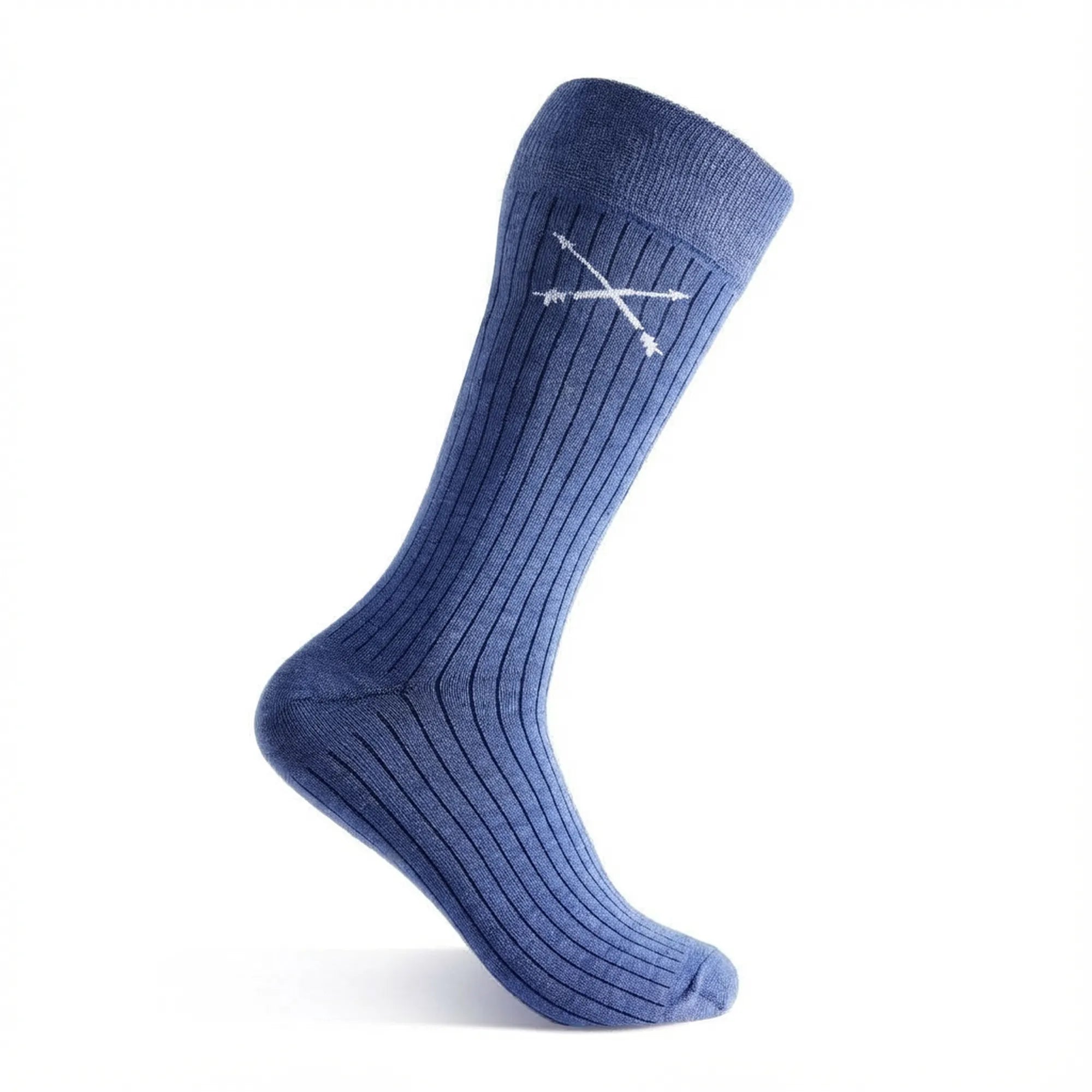 A steel blue dress sock with midnight blue ribs, perfect for the traditionalist.