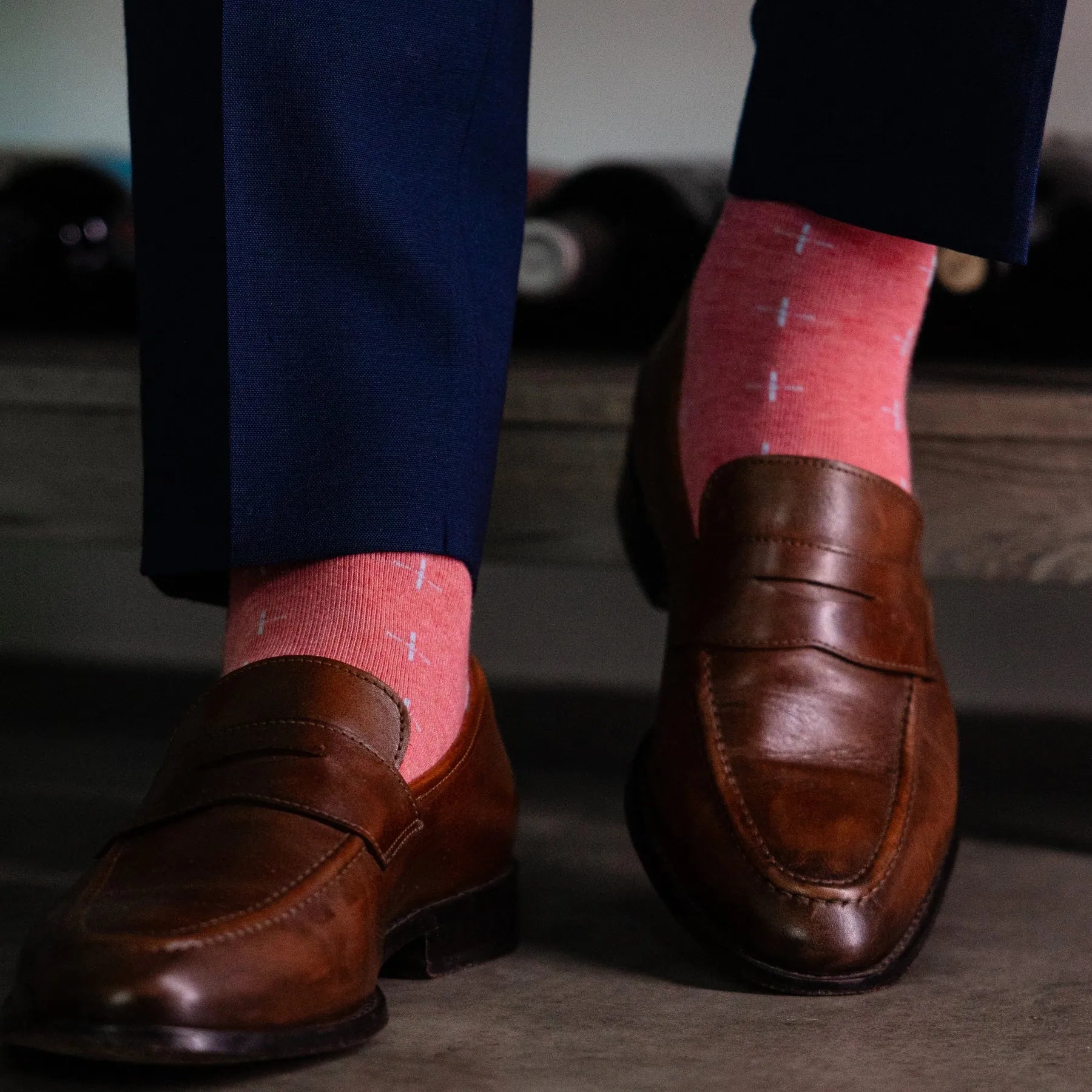 The Savannahs - A Coral Sock with Pale Blue T-Suns